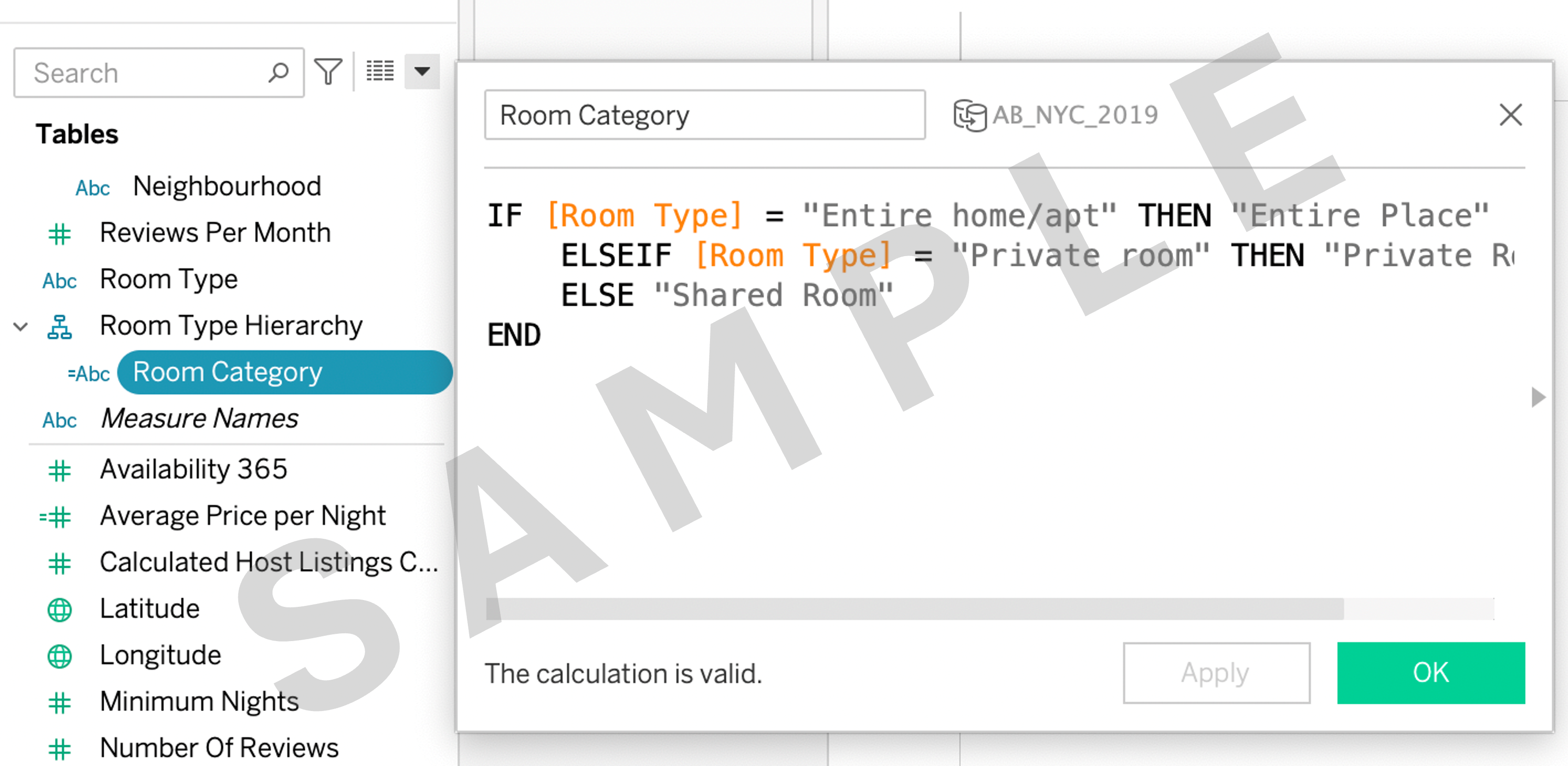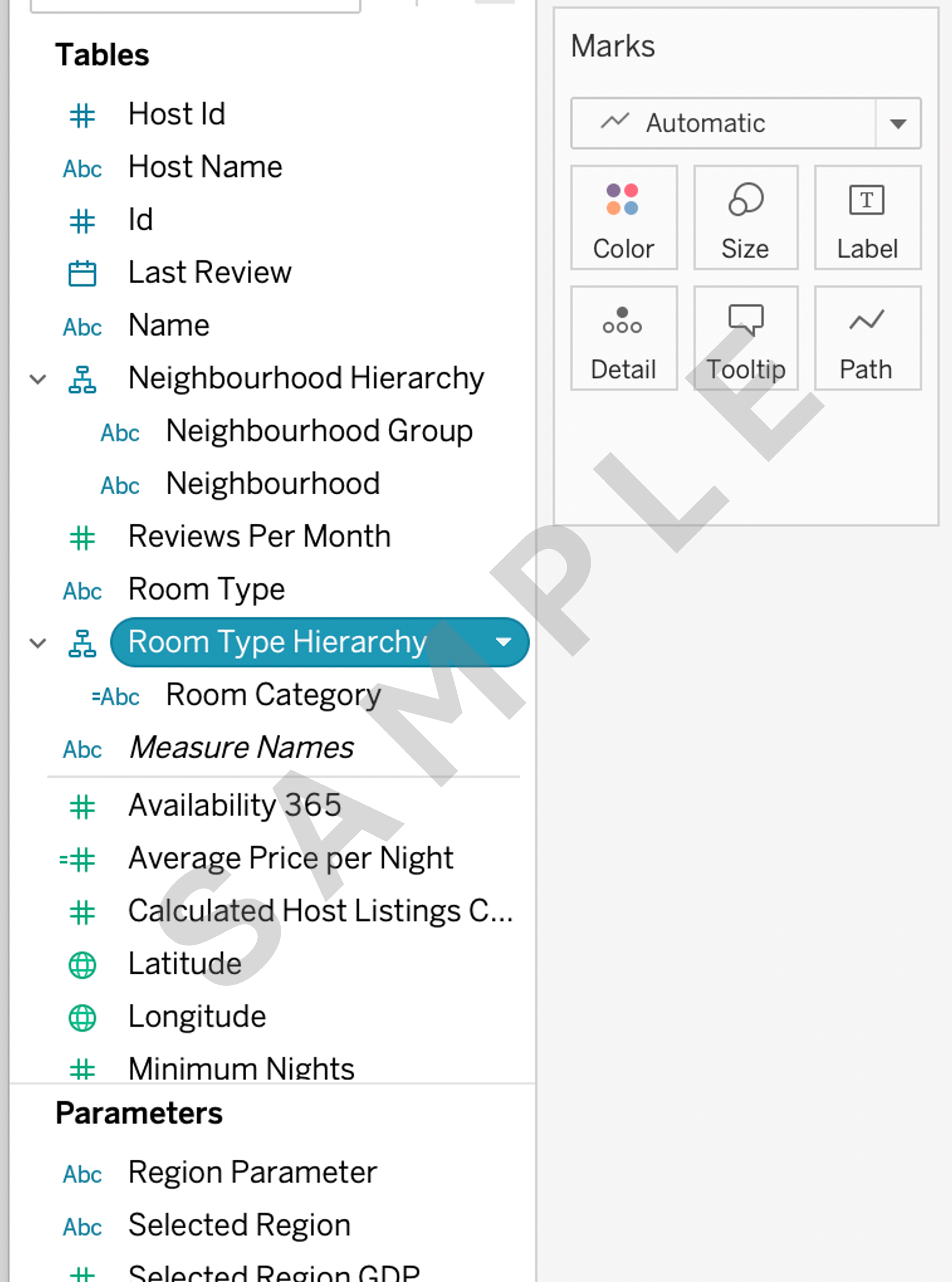 1.2 Create a separate hierarchy named Room Type Hierarchy for different room type entire home/apt, private room and shared room. There is no separate field like Entire home/apt, Private room or Shared room.