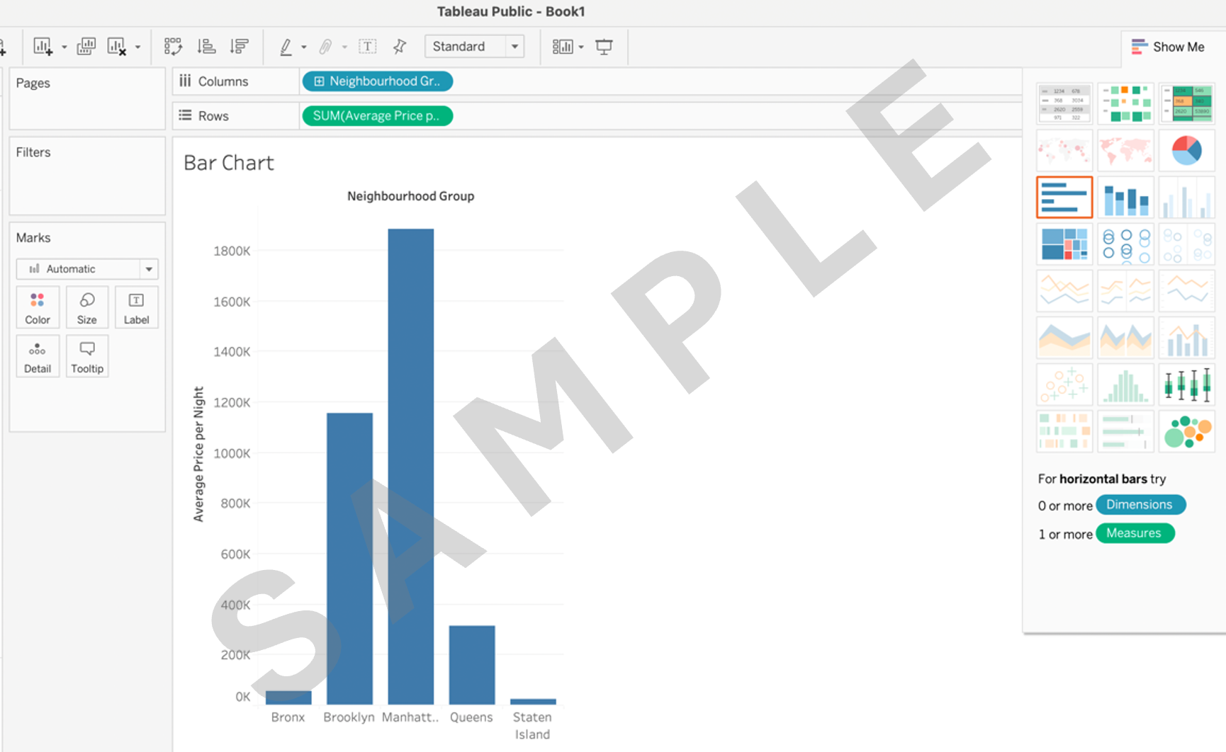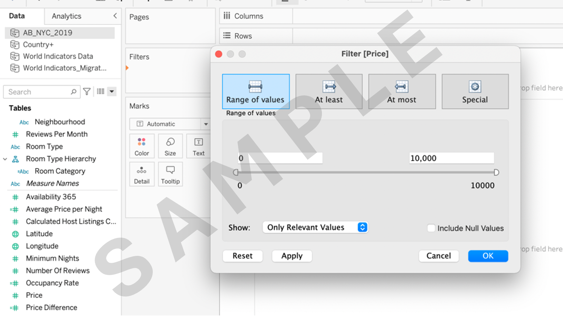 2.1 Filter the fields Price, Occupancy Rate, and Minimum Nights so that you can work non-null values for those fields. You use the Filter shelf for filtering in Tableau Desktop [Public Edition].