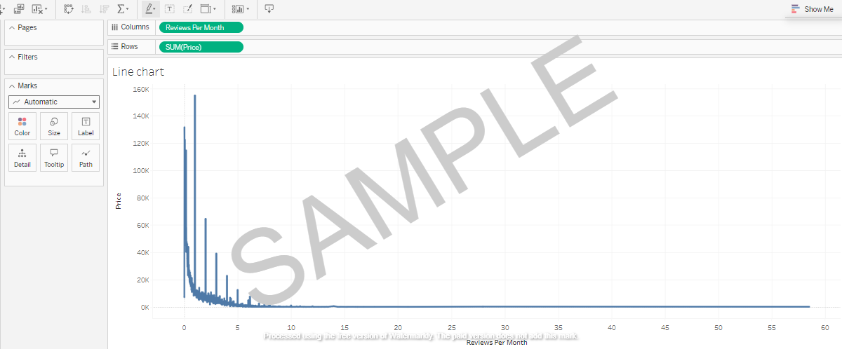 3.1 Create a Line chart to visualize the relationship between Price and Reviews Per Month.