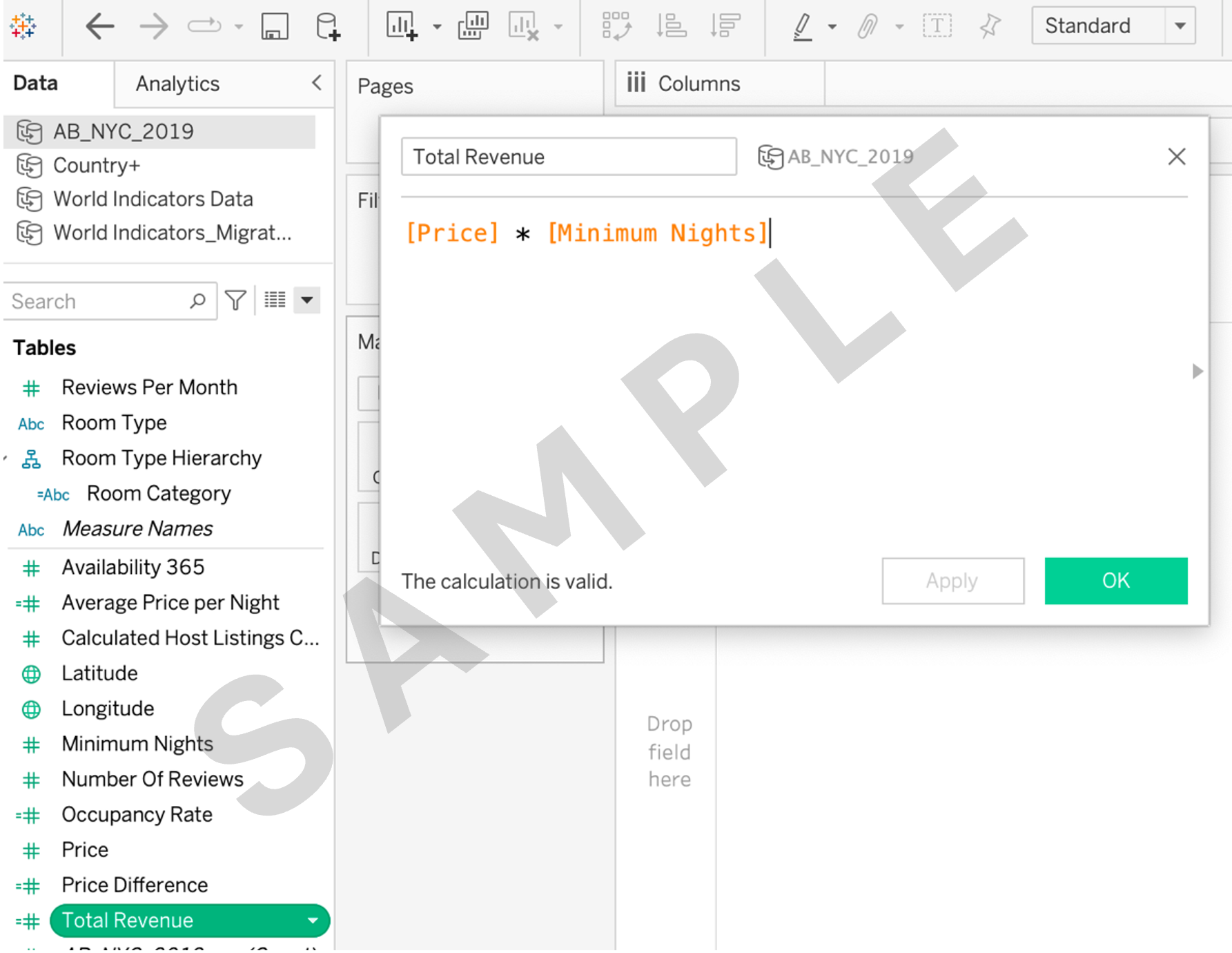 4.2 Create a calculated field named Total Revenue by multiplying Price by Minimum Nights.