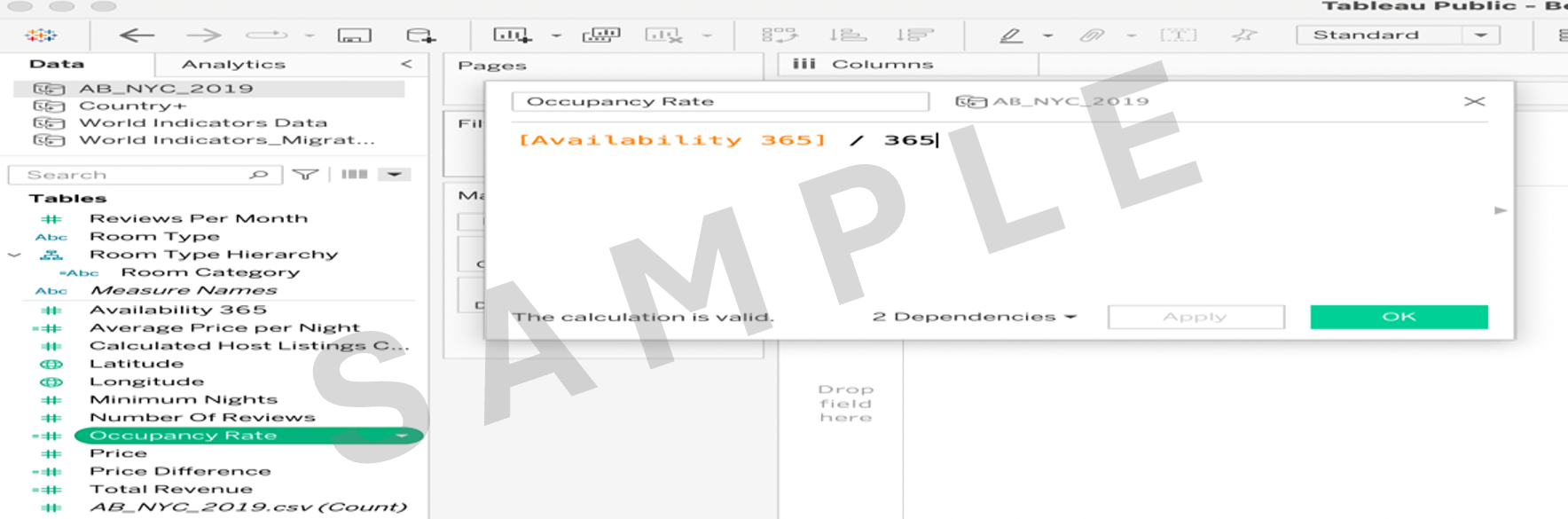 4.3 Create a calculated field named Occupancy Rate by dividing Availability 365 by 365.