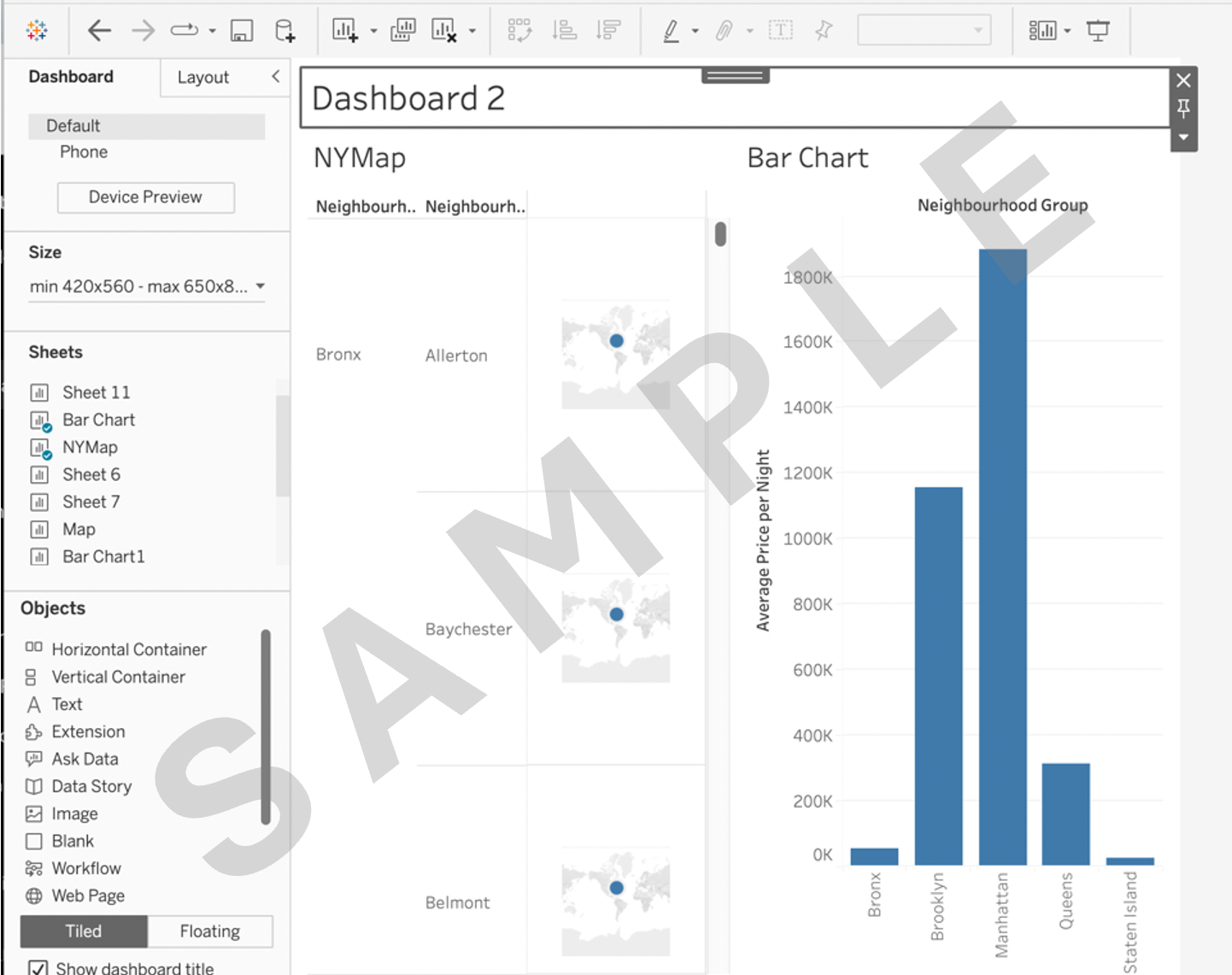6.1 Create a dashboard and arrange the created visualizations (map and bar chart) and calculated fields into a visually appealing and informative dashboard.